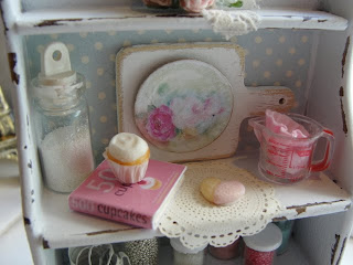 Today I share with you a little shabby baking shelf and a fun whoopie pie party cake. I hope my minis show my mood. Happy happy happy!!!! I hope happy is finding you as well. Mini hugs!